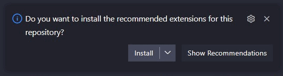 .vscode/extensions.json. Örnek - Kodu açan kişide eksik eklentiler varsa çıkan öneri penceresi: