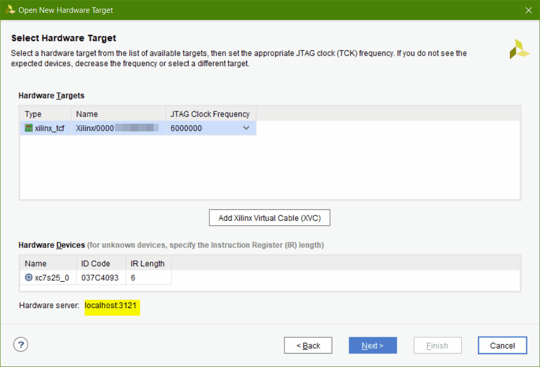 ilgili IP ve port bilgilerini girerek uzaktaki JTAG cihazına bağlanabilirsiniz: