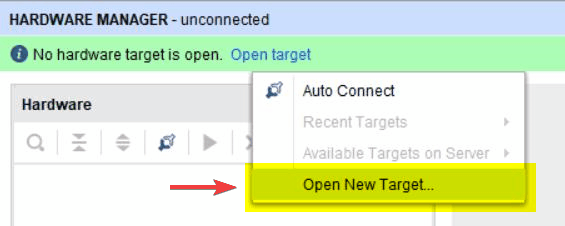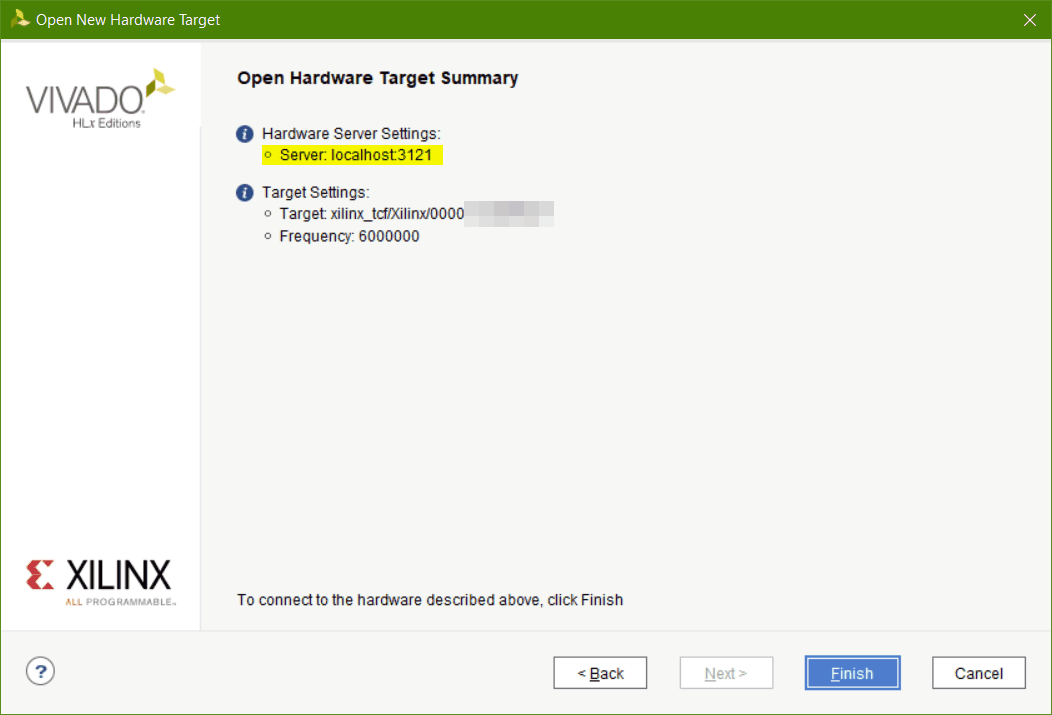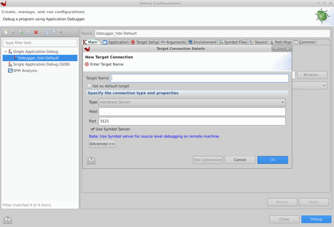 Benzer şekilde Vitis ile hata ayıklama yaparken New Target Connection diyerek