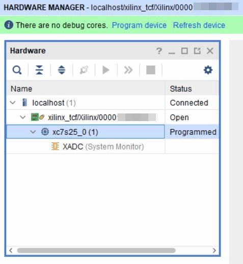 FPGA’i görmemiz gerekiyor. Hardware server kısmında lab bilgisayarının