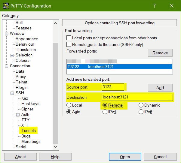 yapabilirsiniz. Putty’de bunu yapmak için Connection ➔ SSH ➔ Tunnels