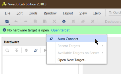 istediğimiz zaman Open Target ➔ Open New Target diyoruz, Auto Connect