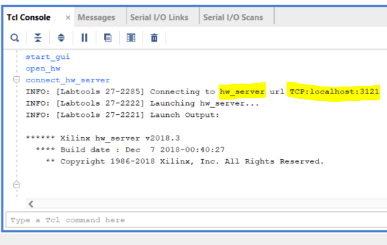 olarak 3121 nolu TCP portunu dinleyen bir hw_server başlatıldığını