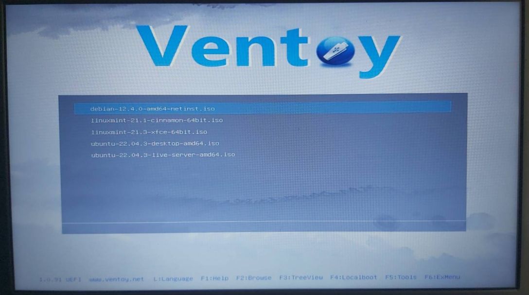 Boot ettikten sonra Ventoy’un ekranı geliyor ve kullanmak istediğimiz imajı seçiyoruz.