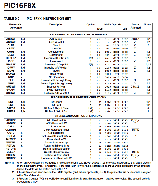 processor, such as MOVLW, MOVWF, and CALL. Some of them are included for